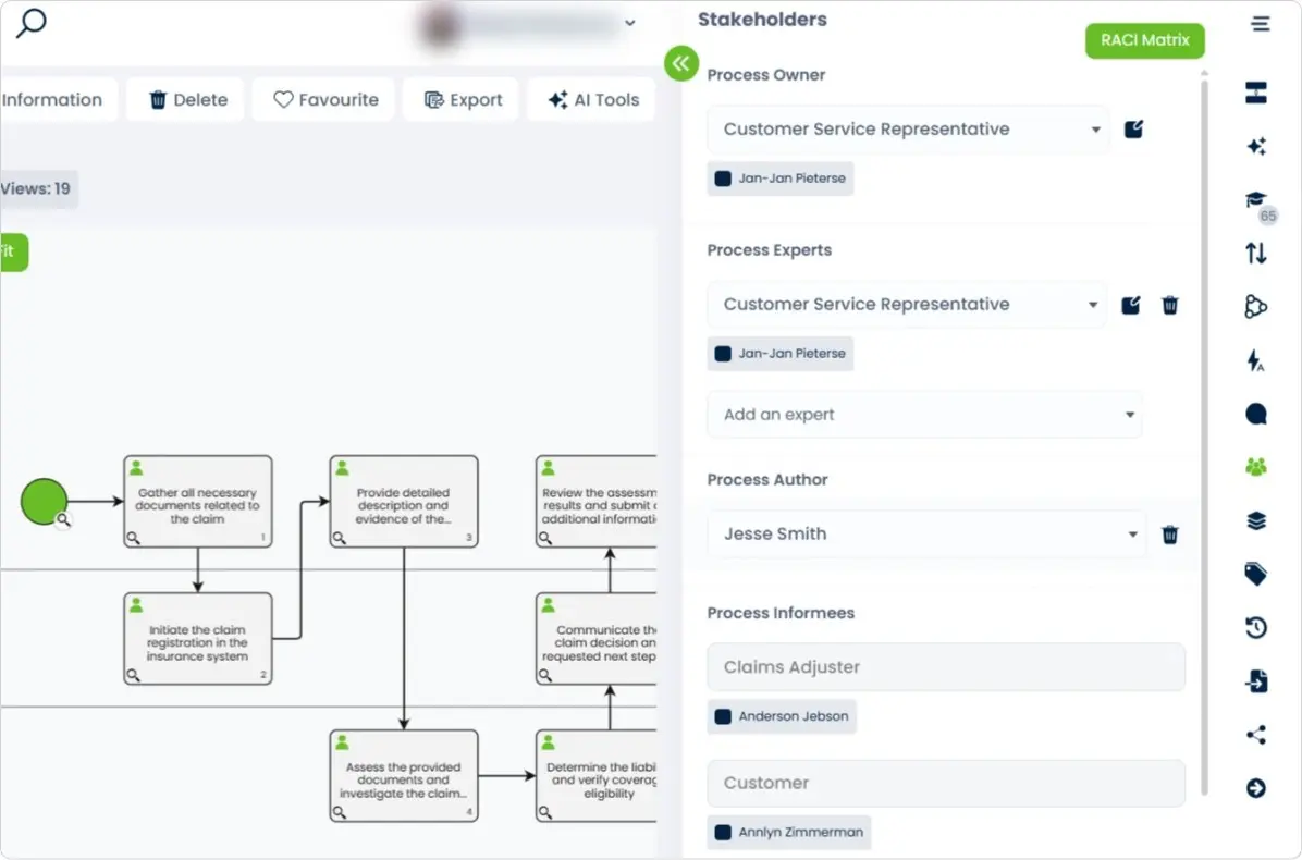A ProcessPro stakeholder management view showing how organisations can assign ownership, define experts, and maintain accountability.