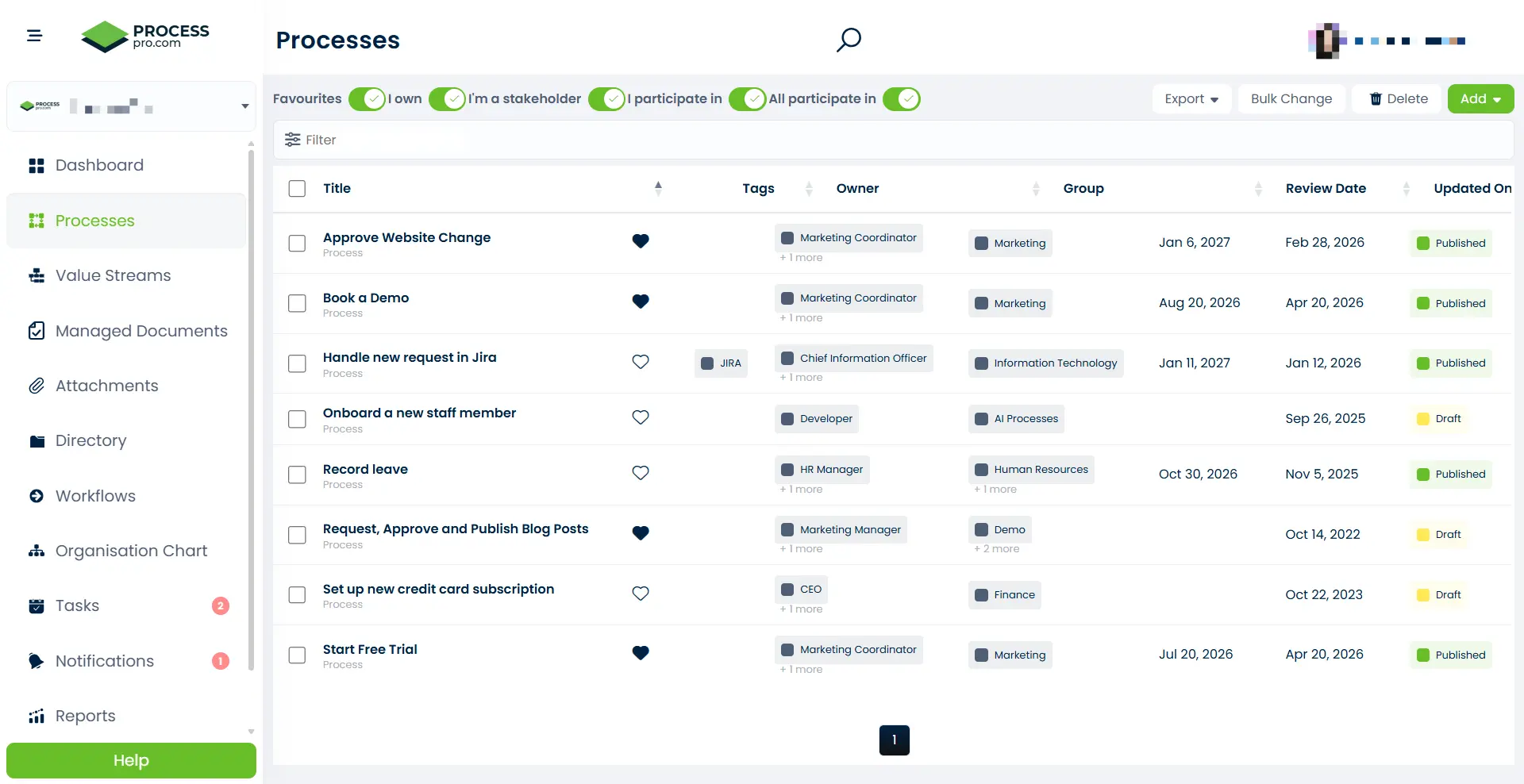 ProcessPro gives you one clear system to map, own, govern, and improve how work gets done.