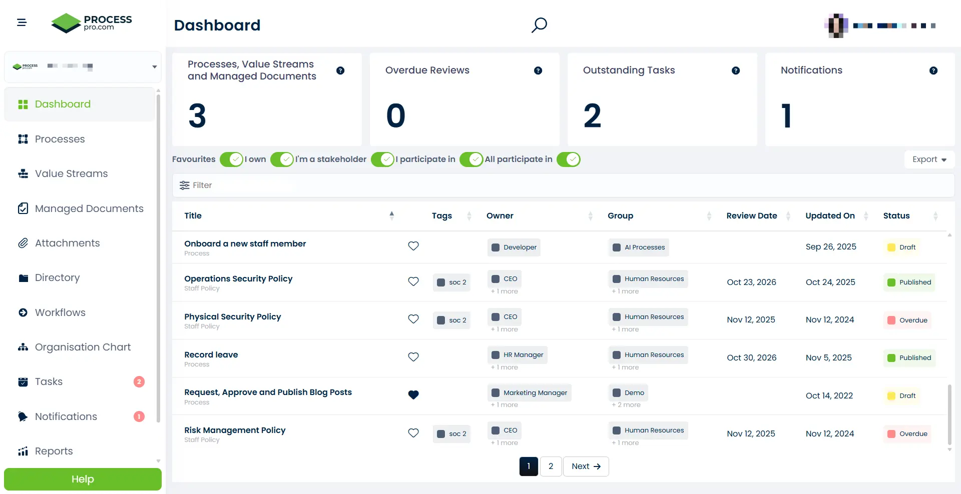 Organisations choose ProcessPro because it moves processes from documentation to control.